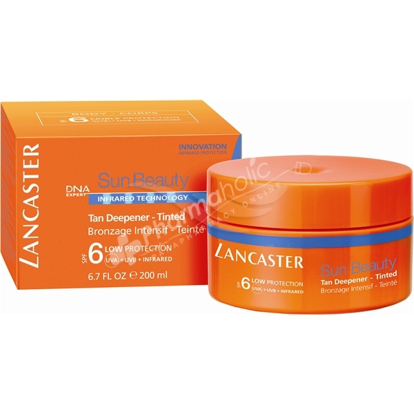 Lancaster Sun care Tinted Tan Deepener SPF 6 gives you a long-lasting radiant tan and soft, supple skin. The formula provides SPF6 broad protection and contains our Tan Activator Complex, for an even and radiant tan. Designed for skin that rarely burns, always tans, or is accustomed to the sun.