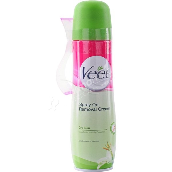 Get touchably smooth skin with VEET Spray On Hair Removal Cream Dry Formula, enriched with Shea butter and Lily fragrance.
